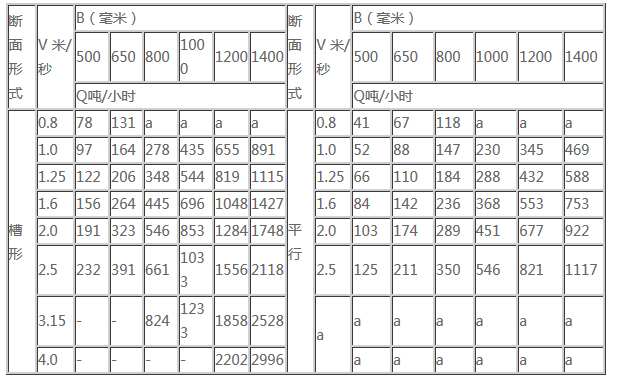 4. 可用于水平或傾斜輸送,傾斜向上輸送時(shí)不同物料所允許最大傾角不同。若傾角增大時(shí),可選用花紋帶式輸送機(jī)。
