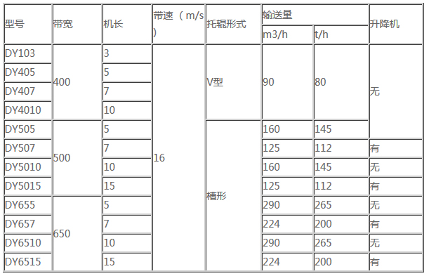 DY移動(dòng)帶式輸送機(jī)主要技術(shù)性能