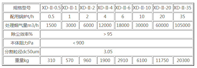 XD-II型多管旋風除塵器是一種高效的除塵器,除塵效率可達95%以上,除塵器本體阻力低于900Pa,用現(xiàn)有的鍋爐引風機就能保證鍋爐正常運行。本除塵器負荷適應性好,在70%負荷時,除塵效率在94%以上。
