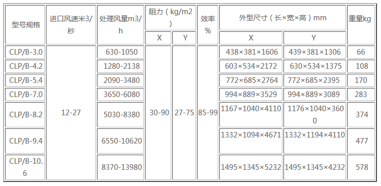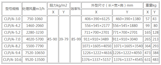CLP/B型是根據(jù)在風機前后位置不同分為X型(吸入式)和Y型(壓入式)其中X型是在除塵器本體增加了出口螺旋殼。X、Y型根據(jù)螺旋方向不同分為N型(左回旋)和S型(右回旋)。